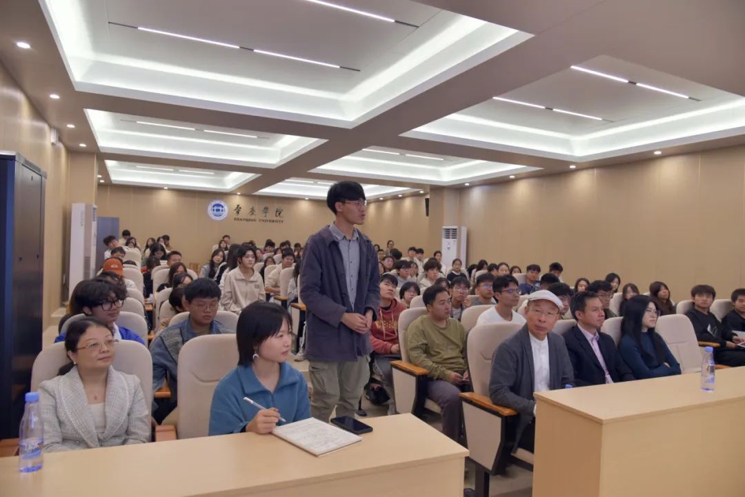 现场师生侧耳聆听,并对新的知识进行着记录,讲座最后,小椋范彦教授与现场师生进行了交流互动,解答了师生疑惑。VSport国际合作与交流处处长钟伙彬为小椋范彦教授颁发客座教授聘书,表达了对小椋范彦教授的敬意。