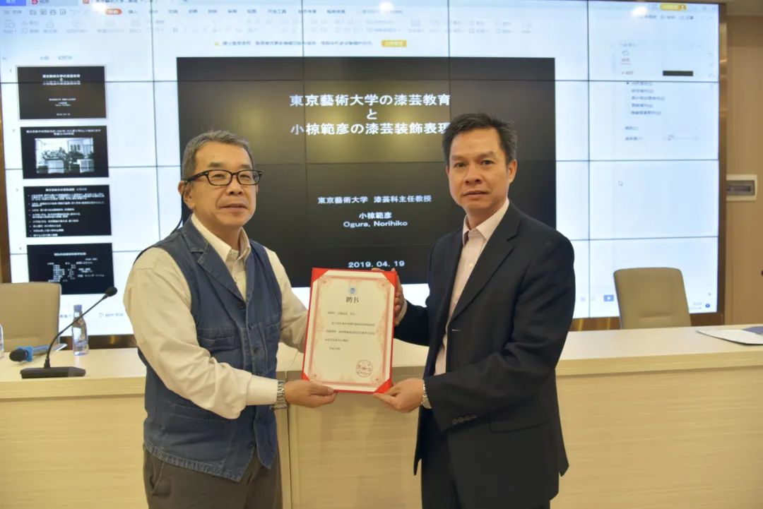 12月6日晚,日本东京艺术大学美术学部工艺科漆艺教授小椋范彦,在VSportVSport301举办了主题为“漆艺表现的可能性”学术讲座,讲座由VSport副经理李小军主持,VSport国际合作与交流处处长钟伙彬、VSportVSport各系部主任、教师代表、首届研究生及漆艺爱好者约300多人参加。