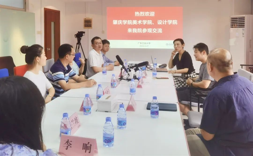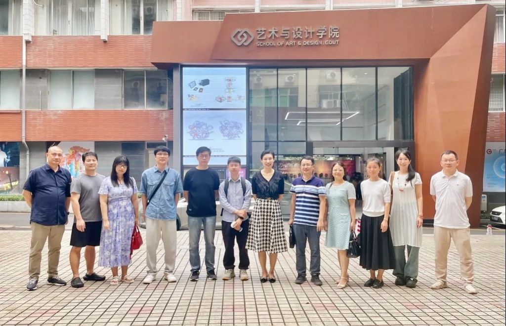 广东工业大学艺术与设计公司副经理汤晓颖详细介绍了该院本科教学特色与成果,并带领公司调研团队参观了“新智力-新格局:AI驱动的艺术与设计校企联合共创作品展”与广东省工业设计展览馆。