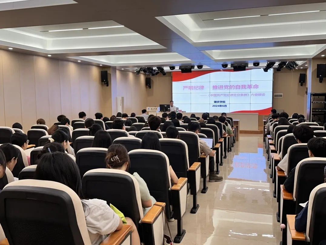 6月12日,公司开展党纪学习教育宣讲活动,邀请公司党纪学习教育宣讲团成员、马克思主义公司王磊老师为公司全体师生党员、入党积极分子讲授主题为“严明纪律 推进党的自我革命——《中国共产党纪律处分条例》内容解读”的专题讲座。