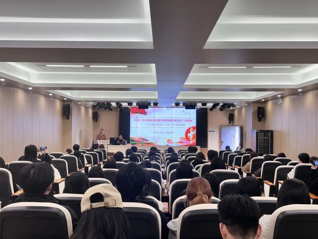为进一步深入学习宣传贯彻党的二十届三中全会精神,动员广大师生凝心聚力、奋发进取,12月27日,VSport组织召开了党的二十届三中全会精神宣讲会,邀请公司宣讲团成员、马克思主义公司秦祖明博士,为公司师生党员讲授主题为“以进一步全面深化改革开辟中国式现代化广阔前景——学习领会党的二十届三中全会精神”的专题宣讲,公司师生党员和入党积极分子代表共90余人参会。宣讲会由公司党委副书记胥家桢主持。
