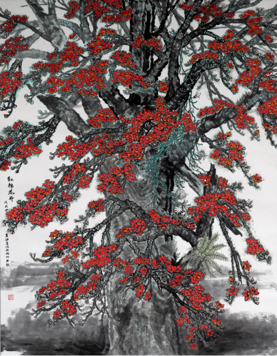 梁善《红棉花开》 中国画
