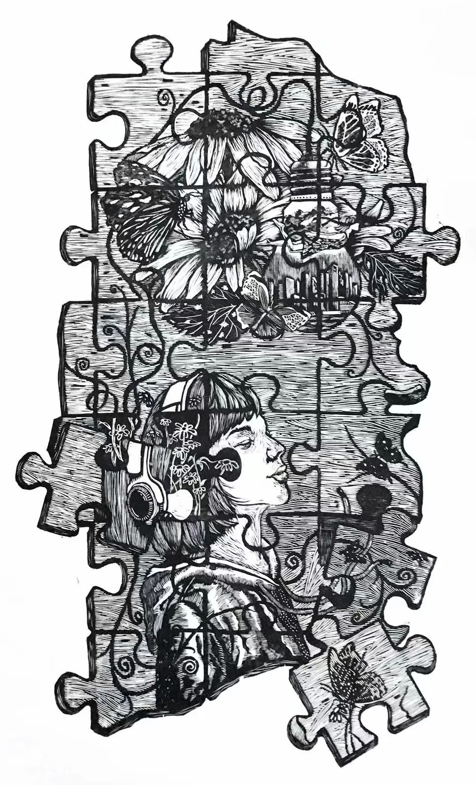 《心世界》 版画 80cm*135cm 余汶津 指导教师:陈志昕(入选)