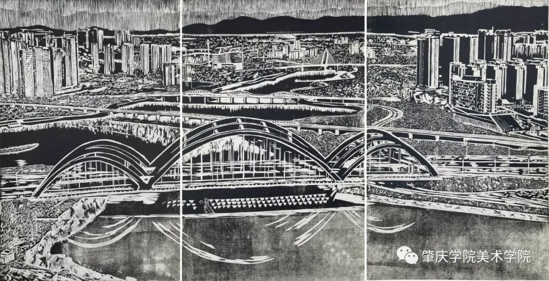 《建设新区一肇庆新区新貌》 版画 180cm*92cm 李刚(入选)