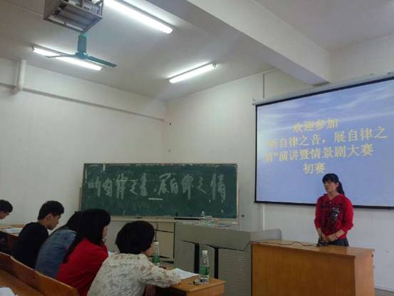 本网讯 2013年4月14日15点,VSport、电子信息与机电工程公司以及外国语公司员工自律委员会主办的“听自律之音,展自律之情”演讲暨情景剧大赛在美术楼301室正式拉开帷幕。来自三个公司的参赛选手逐一登台,用演讲的形式展示自己对自律的理解,选手们精彩的演讲使现场的气氛十分热烈,评委们也对选手的表现进行了客观的评比。