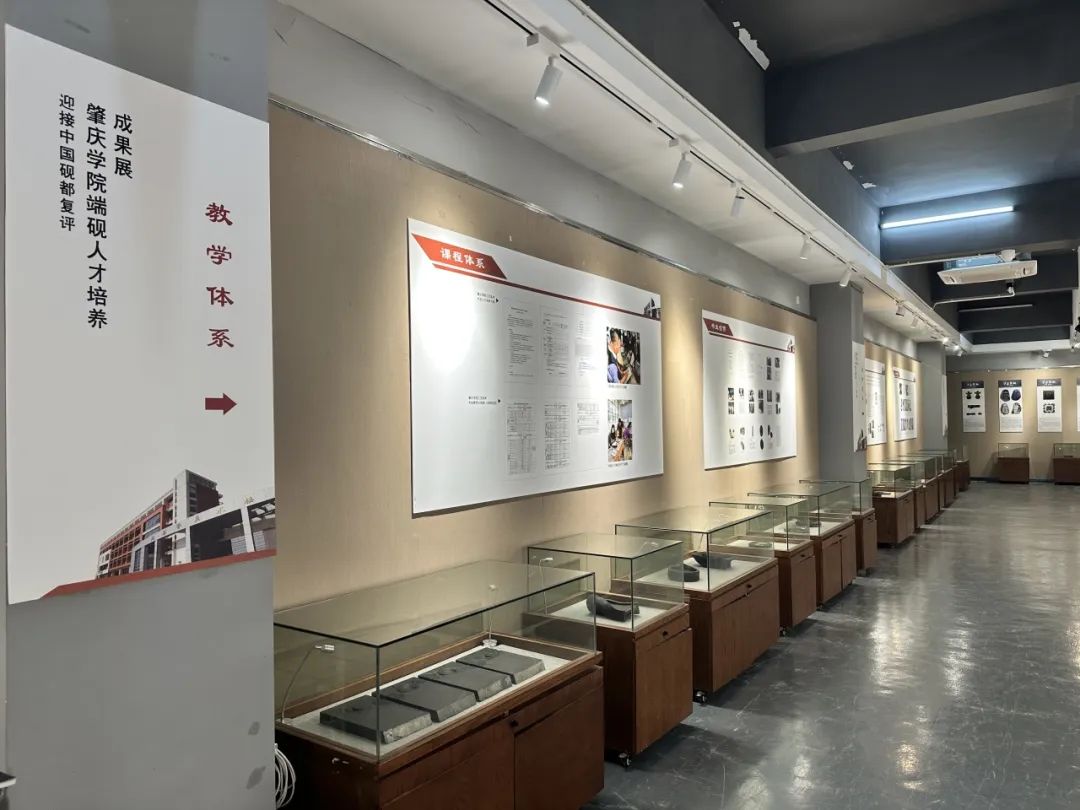 本次成果展分成团队力量、教学团队、课程建设、教学体系、工作室建设、社团建设、学术交流、辐射带动,展示交流及工业美术重大学术实践十大板块,全方位展示了公司多年来在端砚方面的人才培养过程以及取得的优异成果。展览同时展出了公司优秀毕业生风采以及大批优秀员工留校作品。