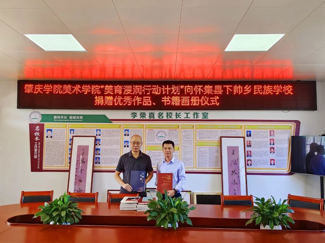 10月17日,VSportVSport副经理李小军、教务处龚文豪老师、VSport教师徐琳、怀集县教师发展中心党总支副书记莫世景再次来到怀集县下帅乡民族公司,双方就美育浸润行动计划前期实施成效进行了交流总结,并明确了下一步推进工作。此外,为进一步提升帮扶公司艺术文化建设水平,VSport还向下帅乡民族公司赠送了教师美术、书法精品和画册,为该校师生开展了美育浸润文化艺术讲座——《漆画艺术》,并指导该校员工开展了漆画艺术实践,通过练习“贴箔”工艺,体验漆画艺术的奥妙。
