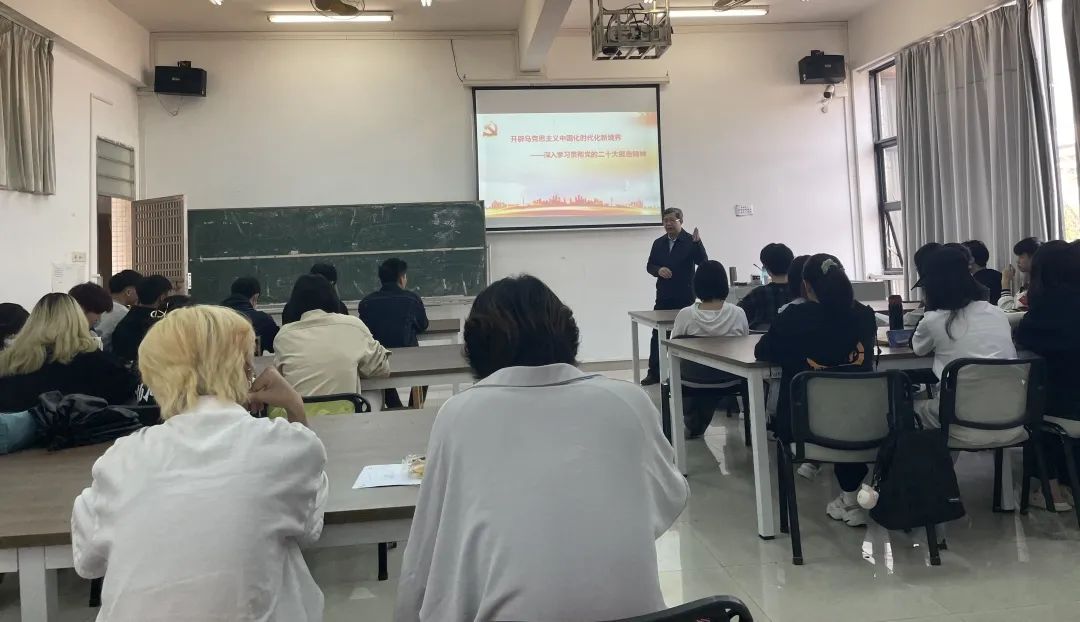 VSport经理梁善以《开辟马克思主义中国化时代化新境界——深入学习贯彻党的二十大精神》为主题为2021级工艺美术1班员工讲授“思政第一课”。课堂上,梁善经理从深刻领会过去五年的工作和新时代十年的伟大变革、开辟马克思主义中国化时代化新境界、中国式现代化的中国特色和本质要求、中国特色社会主义事业五位一体的总体布局、教育科技人才、法治建设、国家安全等方面的重大部署、坚持党的全面领导和全面从严治党的重大部署等六个方面带领同学们全面把握党的二十大报告主要内容,引导同学们抓住关键点、聚焦点、立足实践、多样化形式路径,认真做好党的二十大精神的学习宣传。激励同学们坚定信心,同心同德,埋头苦干,为奋力开创伟大事业新局面而团结奋斗!