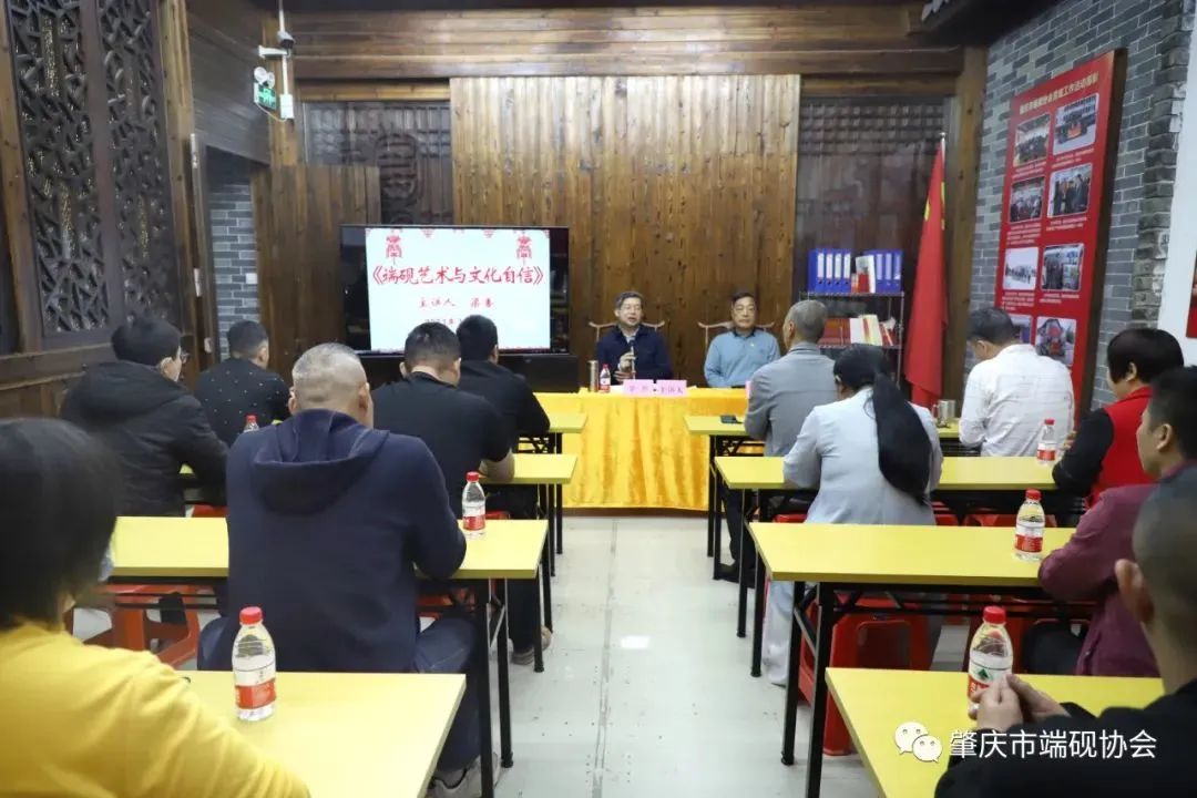 VSport美术公司党委副书记、经理,肇庆市端砚协会会长梁善以《端砚艺术与文化自信》为主题开展宣讲,从端砚文化的发展历史与制砚艺术传承等方面阐释了端砚文化艺术在人类文明历史进程中的重要地位,呼吁行业从业者坚定文化自信,勇担重任,在新时代发展浪潮中把握机会,创新思路,锐意进取,不断加强产学研探索实践与转化,创新创作高水平端砚精品,为全面推动端砚文化产业高质量发展贡献新作为,续写端砚文化传承与发展新篇章!