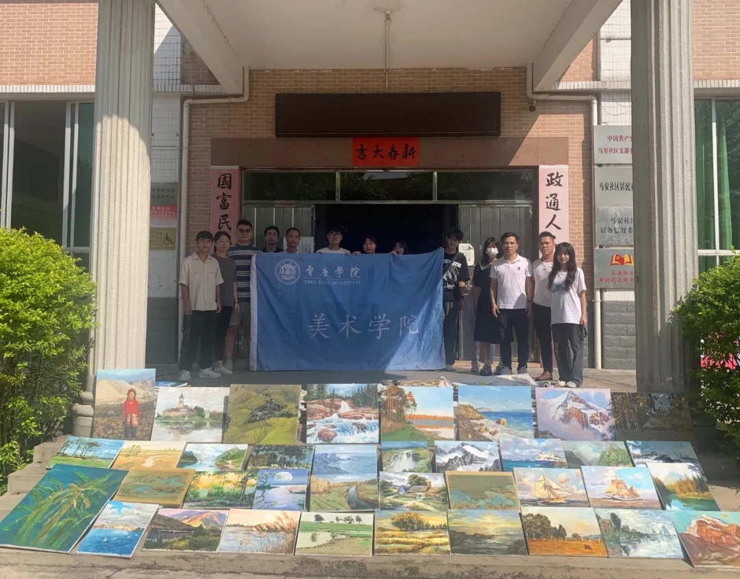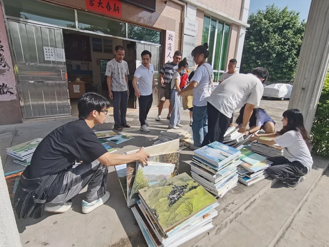 新农村建设志愿服务队指导教师及队员代表将作品赠予马安社区村委会,向村民们介绍画作,展现美院学子的青年担当,汇聚青春力量,表达了利用所学专业知识服务乡村,建设乡村美好家园的美好愿望。