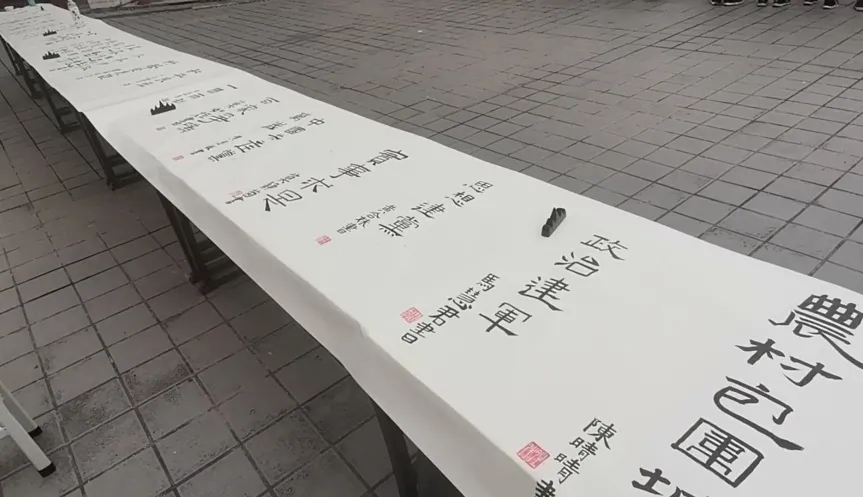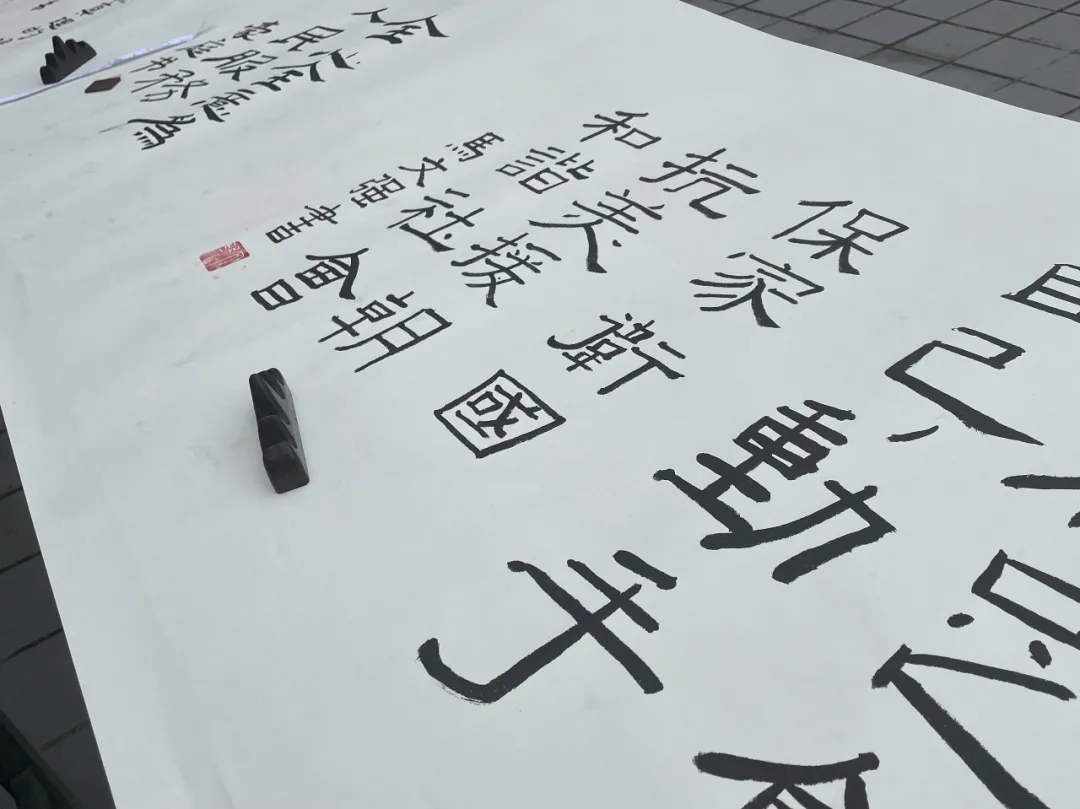 为进一步引导少数民族员工在艺术学习中自觉学党史、颂党恩、跟党走,7月16日除了对大家的学习成果进行展示和验收外,我们还组织了志愿者与员工以“同心向党”为主题进行了25米长卷的书绘创作,多民族共同以书写、绘画的形式表达对中国共产党的热爱与崇敬之情!