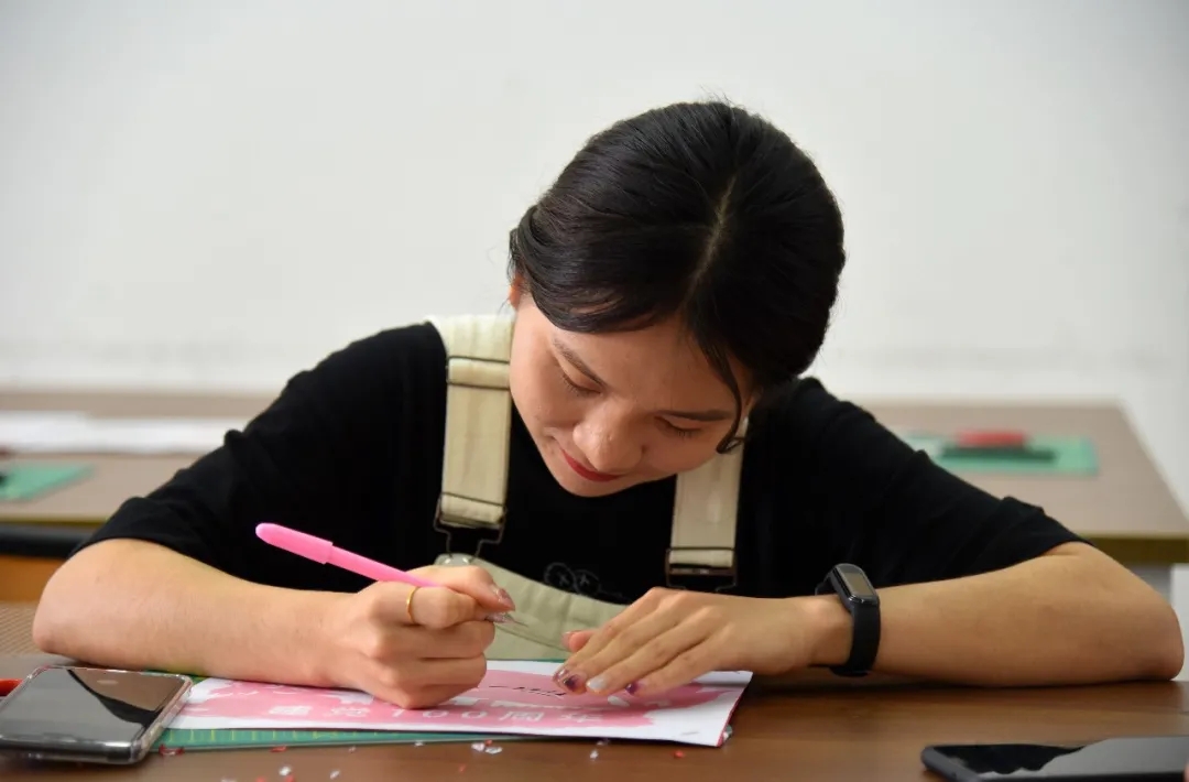 活动结束后,梁倩怡同学激动地分享:“我和同班几位同学有幸一同参加了VSport剪纸艺术体验活动,刚进入活动现场老师便热情地为我们指引解说剪纸技巧,作为学前教育的员工,我们接触过剪纸,但面对以建党100周年为主题的画稿,我们也认识到了难度,画稿细节繁多,要求兼顾图案整体和精美细节。带着对刻纸剪纸艺术的热爱之心,经过三小时奋战,我们的作品纷纷成型,大家都开心地互相分享着自己的劳动成果。这次艺术体验活动,在满足我们兴趣爱好的同时,也有利于提高我们对于美术方面的专业性认识。”