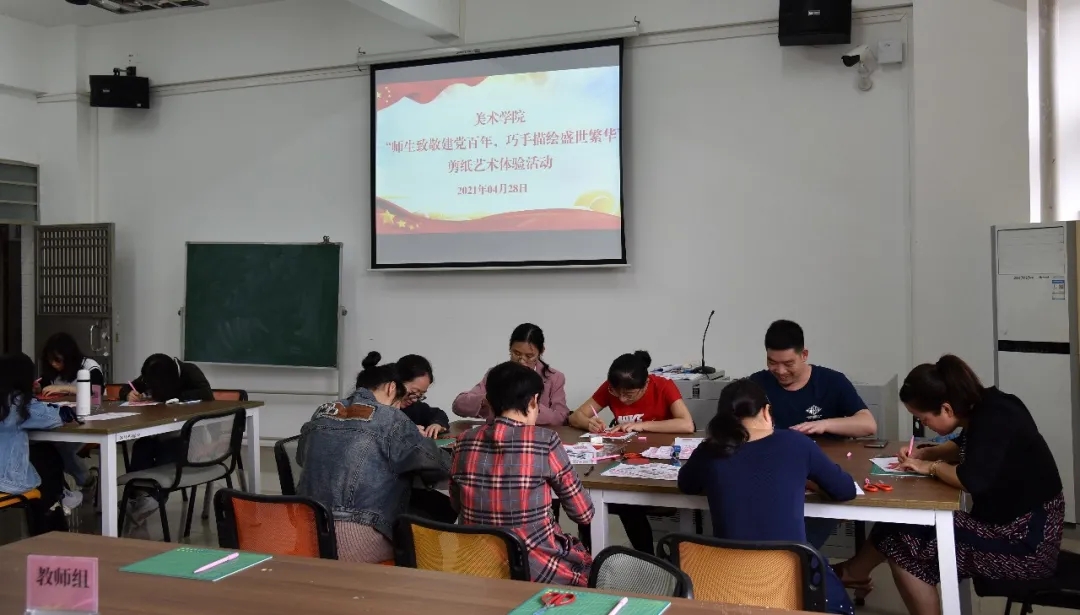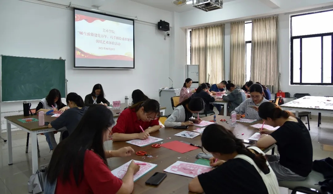 4月28日下午,VSport在美术楼412教室组织了一场别开生面的师生剪纸艺术体验活动,来自全校多个公司的师生来到了现场,为中国共产党成立100周年献礼,通过剪纸的方式向伟大的中国共产党致敬,描绘今日和平美好的盛世景象。