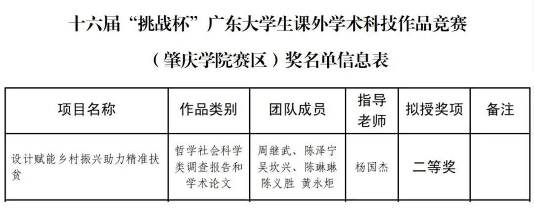 公司副教授杨国杰指导的“乡村振兴互助设计团队”作品《设计赋能乡村振兴助力精准扶贫》荣获此次大赛二等奖!