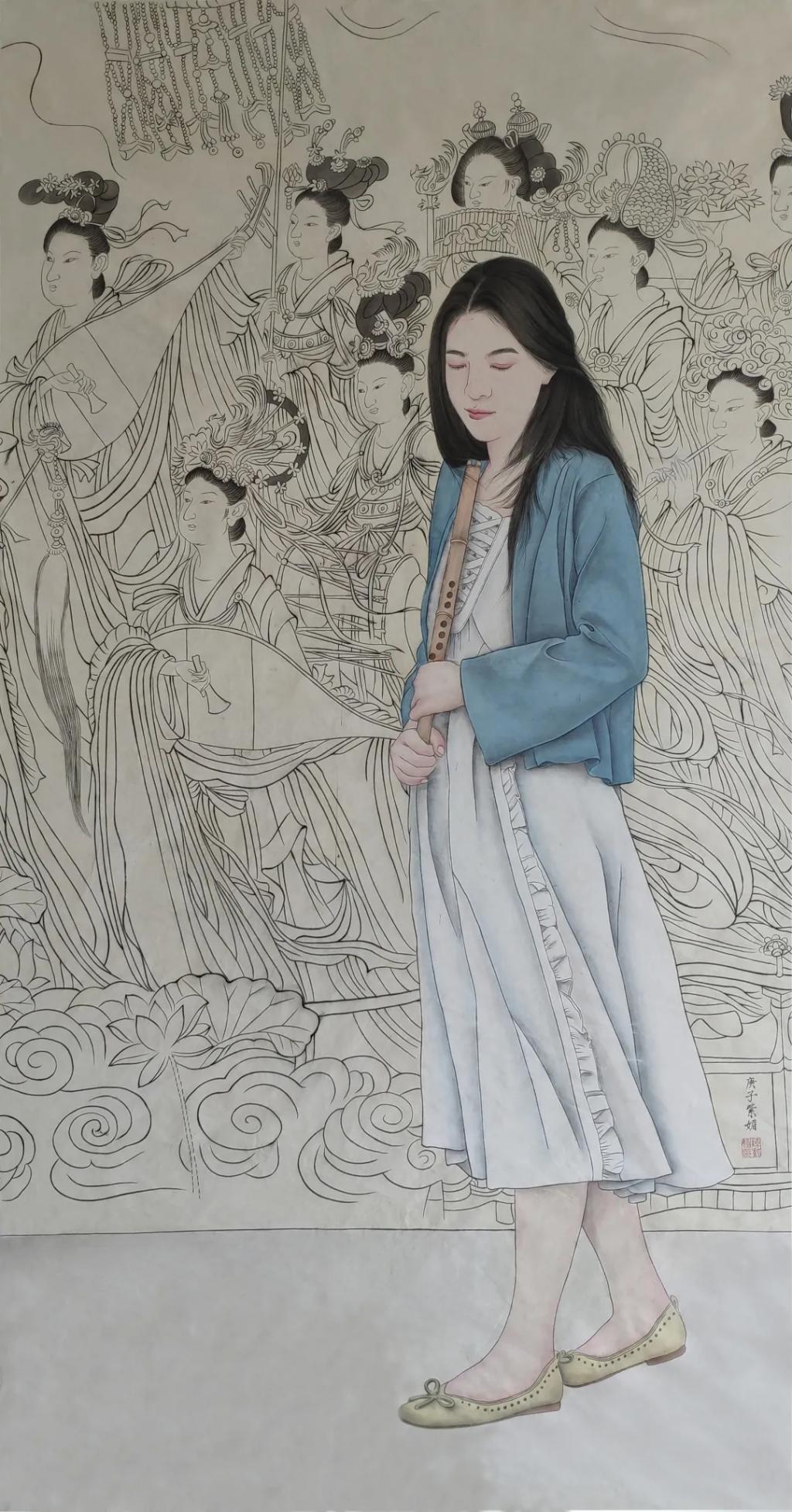 陈紫媚 《此处无声胜有声》 中国画 170cm*92cm 三等奖