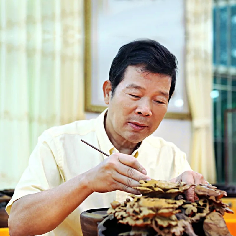 1972年创作雕刻的大型宋坑端砚《白鸟鸣春》砚作为国宝被北京故宫博物院收藏。...2019年10月,荣获中共中央、国务院、中央军委颁发的中华人民共和国成立70周年纪念章!