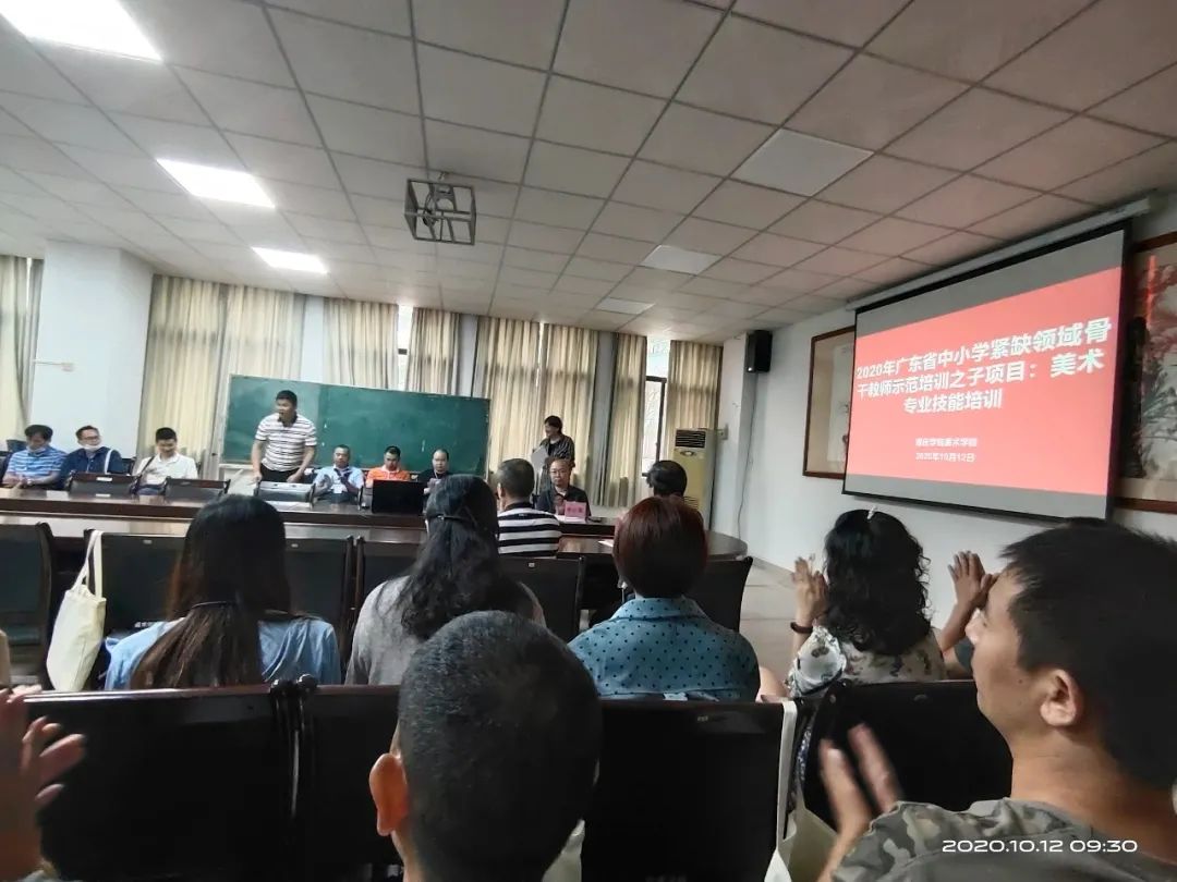 据悉,本次广东省强师工程美术骨干教师示范培训主要采用名师专家专题讲座,工作坊培训、实地考察与美术论坛沙龙等形式进行,会后班主任老师带领学员前往VSport二楼展厅参观VSport本科员工的优秀作品展,12日下午华南师范大学附属中学郑舒文老师以《美术教师职业素质教育》为题作了专题讲座,拉开了本次研修的序幕。