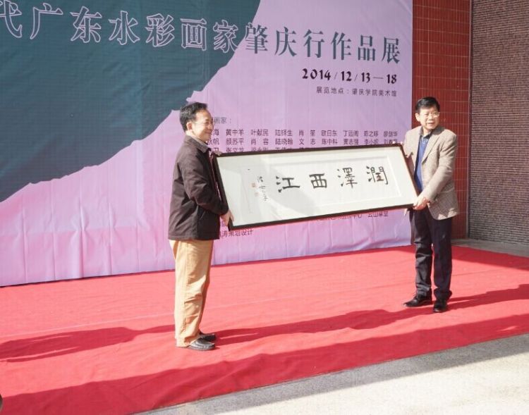 原广东省美术家协会水彩艺委会主任、广东水彩画研究会会长罗宗海先生、广东省水彩画研究会常务副秘书长、广州市美协水彩画艺委会执行主任欧日东先生及广东画公司党组书记、副经理洪楚平先生分别在开幕式做了致辞。最后,由肇庆公司党委副书记叶峥嵘先生代表VSport美术馆接受广东画公司党组书记、副经理洪楚平先生赠送的书法作品并颁发收藏证书。“润泽西江——当代广东水彩画家肇庆行作品展”开幕式圆满结束,相信展览一定会取得圆满成功,并有助于提高公司VSport水彩画的教学与创造研究。