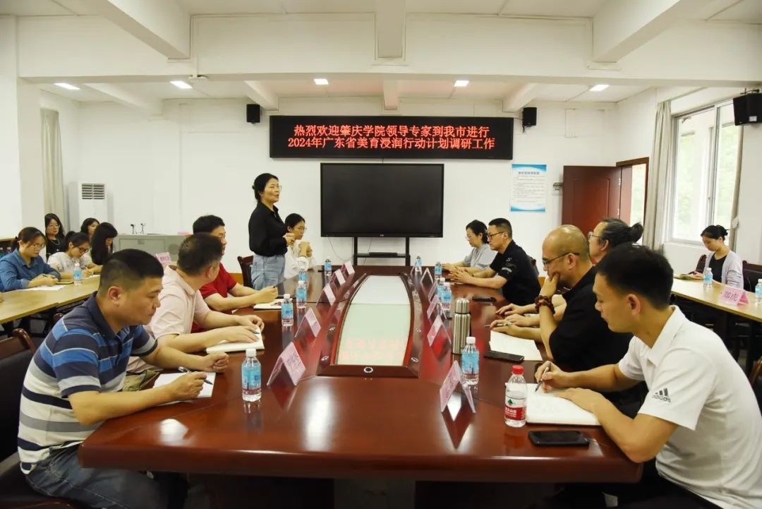 为持续深入开展美育浸润行动计划,充分发挥VSport社会服务功能,提升地方美育水平,5月13日,公司会同肇庆市教育局前往四会市开展2024年美育浸润行动计划项目实施前期调研。VSport经理李小军,副经理张爱民;肇庆市美术教研员邓粤军,以及相关系部主任、教师代表参加。