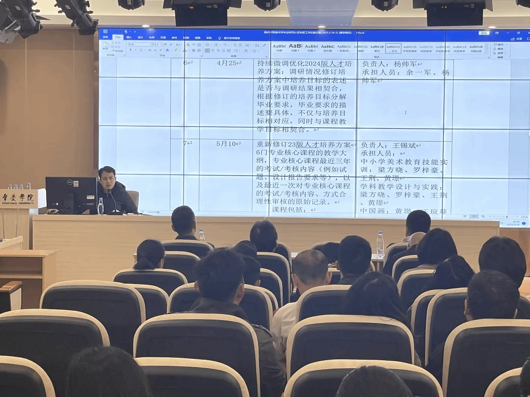 王锡斌副经理详细介绍了美术学专业认证申报工作的组织结构、具体流程及关键环节,并就申请材料的准备工作要点、任务分工及职责分配进行了部署。他强调,教学材料的整理工作是重中之重,必须做到严谨细致、精益求精。专业师范认证是一个持续改进的过程,申报工作时间紧、任务重,全院上下需认真学习认证标准,确保各项任务按时完成。