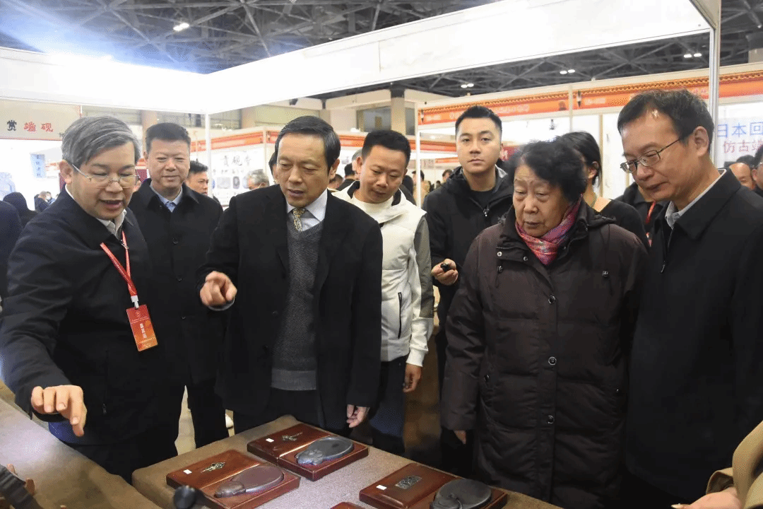 中国文房四宝协会陈建国会长、郭海棠名誉会长及肇庆市委常委刘海斌亲临展区指导,驻足了员工设计作品以及创新砚雕作品,详细询问创作理念与工艺技法,对公司立足地方优势培养非遗传承人才表示高度认可,特别赞赏产学研融合实践对传统端砚艺术的活化创新作用。