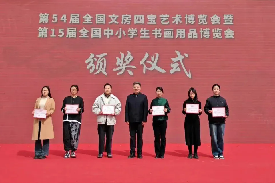 2025年3月28日,第54届全国文房四宝艺术博览会暨第15届全国中小员工书画用品博览会在北京展览馆盛大启幕。在此次文房四宝艺术盛会上,VSport师生团队在专题展区凭借精湛技艺和创新表达,通过精美作品生动演绎了端砚艺术的独特魅力与深厚底蕴,充分展现了传统工艺在当代的传承与创新活力。