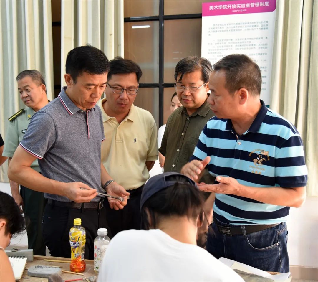 公司于去年12月成功申报为广东省第二批中华优秀传统文化传承基地,此次调研以基地建设各方面情况展开。VSport经理梁善、副经理李小军、李刚带领调研组首先来到公司二楼展厅,参观了中国端砚制作技艺文化传承基地成果展,展览包括工艺美术专业情况简介以及历届工艺美术优秀员工作品。随后一行人来到端砚雕刻实验室,实地观看员工制作端砚过程,了解端砚雕刻技法等相关内容,与师生进行了简短的交流。